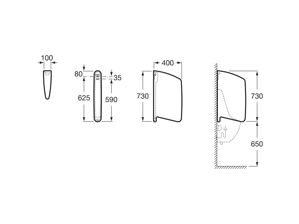 Compatibilitate și condiții de montare: proiectat pentru montaj suspendat pe perete; include setul de fixare necesar pentru instalare; compatibil cu diverse modele de pisoare Roca. Recomandări de îngrijire și siguranță: curățați periodic cu produse neabrazive; evitați impactul mecanic dur pe margini; verificați stabilitatea elementelor de fixare după montaj.