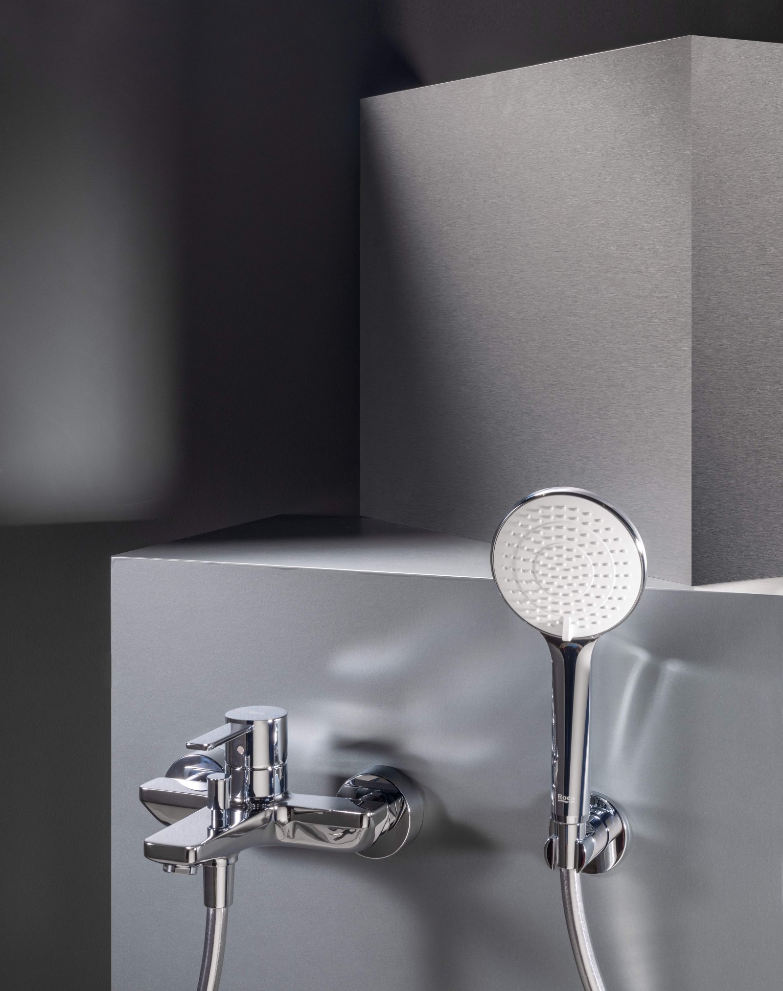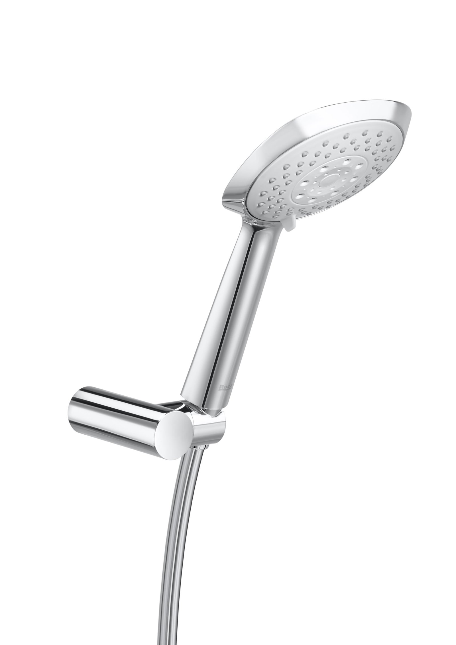 Setul de duș Roca oferă o soluție completă și practică pentru utilizarea zilnică. Pachetul include o pară de duș manuală cu diametrul de 130 mm și patru funcții de pulverizare, un suport de perete reglabil și un furtun flexibil din PVC satinat, cu lungimea de 1,70 m. Finisajul cromat asigură rezistență ridicată la coroziune și un aspect elegant de durată.