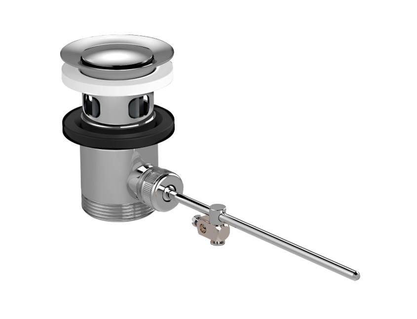 Set de scurgere pop‑up pentru lavoar sau bideu, include ventil de evacuare și dop cu funcţie de închidere, conexiune standard G 1/4", destinat instalațiilor cu preaplin (overflow). Acționarea se realizează prin tijă-de tragere, dopul este din alamă, suprafața finisajului - crom.