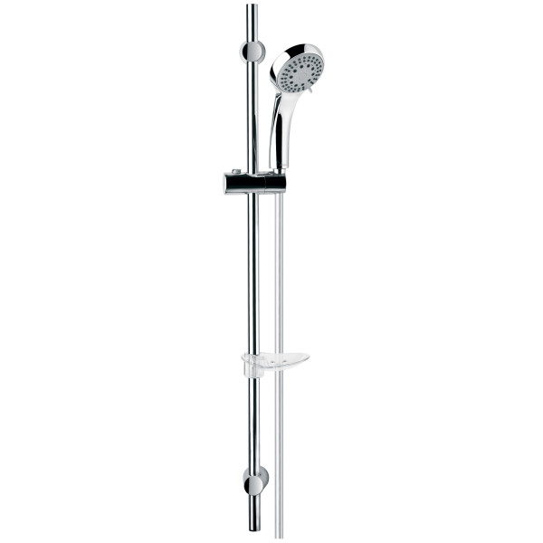 Setul de duş este proiectat pentru a asigura o soluţie completă de duş în baie, cu posibilitatea de a selecta unul dintre cele cinci tipuri de jet — „ploaie”, „masaj”, „mixt”, „ușor” sau „ceață”. Para cu diametrul de 100 mm oferă o distribuţie uniformă a apei pentru un duş confortabil, iar bara de duş de 900 mm permite reglarea ergonomică a înălțimii. Setul include para de duş, bară, furtun, suport și săpunieră — suficient pentru montaj fără componente suplimentare.