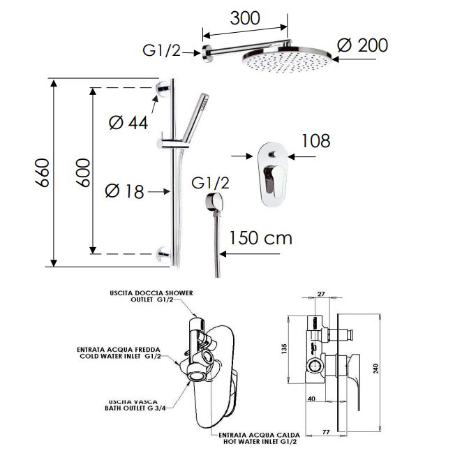 Set OMEGA duș încorporat 2 ieșiri
