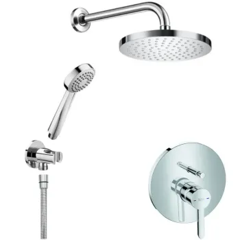 - Pachet complet: bară de duș, cap fix Ø200 mm, para de duș, furtun 1,5 m, baterie și corp încastrat.