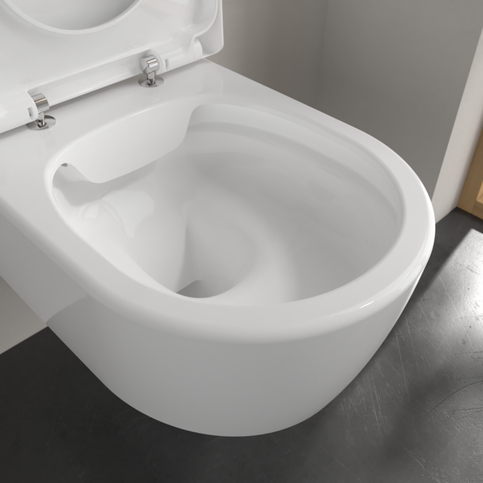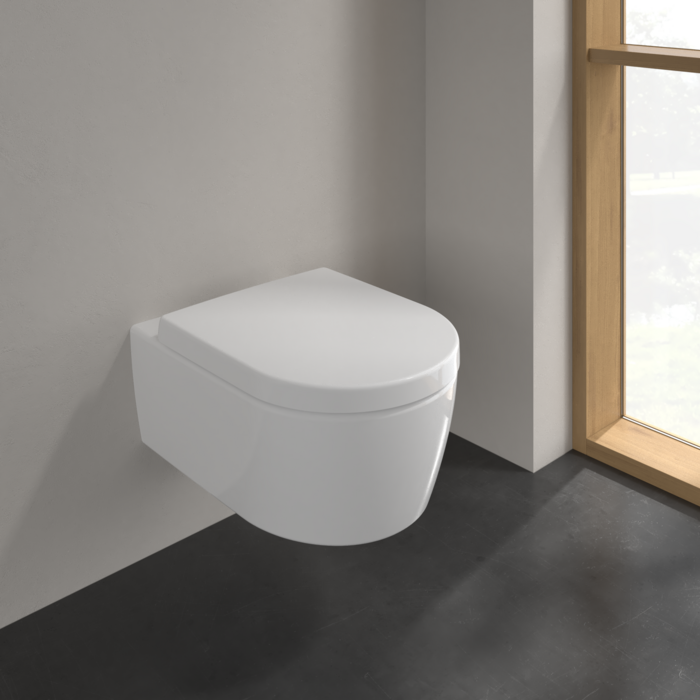 Setul format din vas WC suspendat și capac din colecția AVENTO de la Villeroy&Boch reprezintă o soluție echilibrată ce combină estetica modernă cu funcționalitatea superioară. Vasul este dotat cu tehnologia DirectFlush, care permite clătirea completă a interiorului datorită designului fără margini, eliminând zonele greu accesibile unde se pot acumula bacteriile. Capacul inclus completează setul prin mecanismul de închidere lentă SoftClose, oferind un confort sporit și o utilizare silențioasă în fiecare zi.