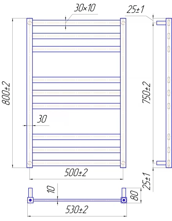 Uscătorul de prosoape Chicago, dimensiuni 800 mm x 500 mm, este realizat din oţel inoxidabil cu finisaj „culoare auriu” și se conectează la sistemul de încălzire cu apă. Tevile orizontale asigură încălzirea uniformă a prosoapelor și a aerului din baie.