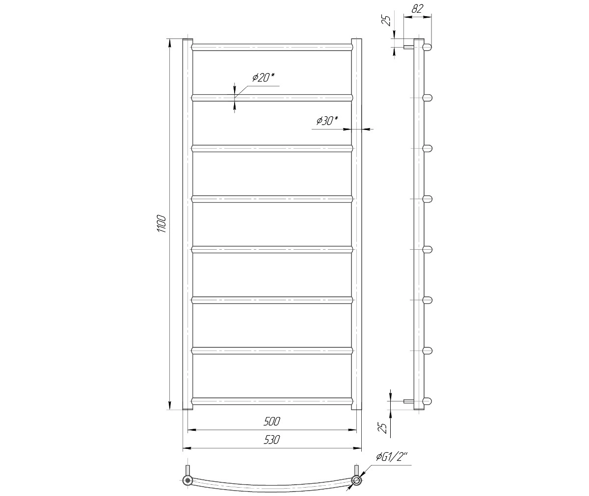 Acest radiator pentru prosoape, de înălţime 1100 mm şi lăţime 500 mm, din seria HP de la Trapetia, este conceput pentru a oferi încălzire şi uscarea eficientă a textilelor în băi sau spaţii utilitare. Fabricat din oţel de înaltă calitate, finisat într‑o nuanţă bronz elegantă, asigură o integrare plăcută în amenajări de baie moderne.