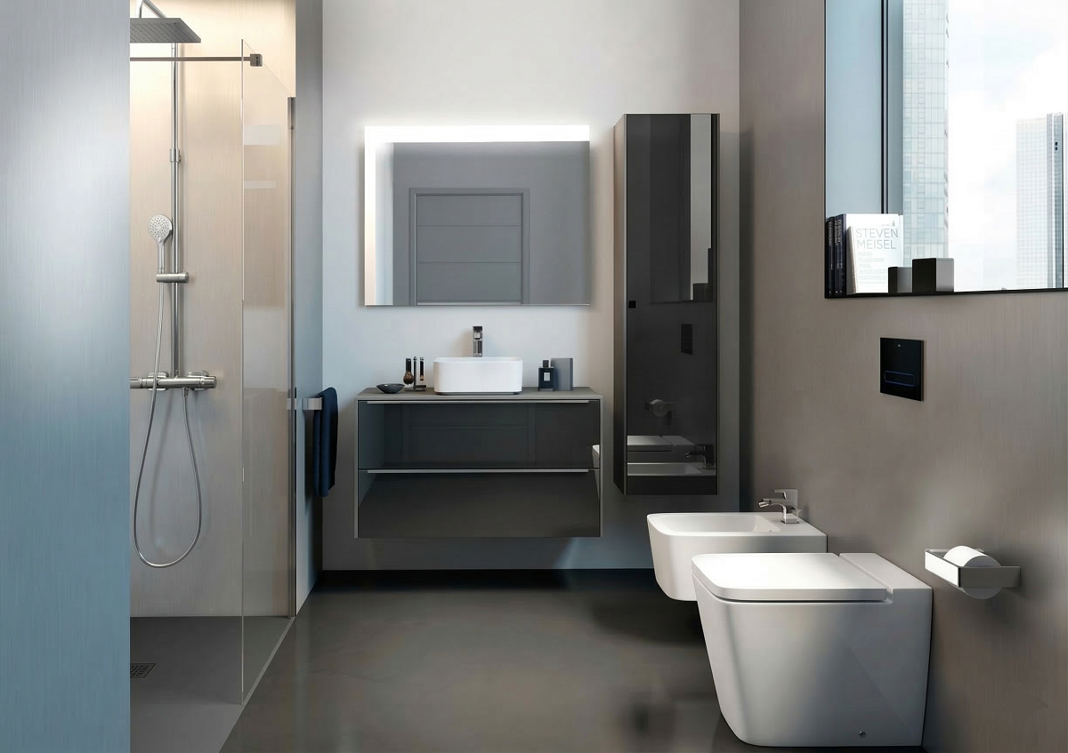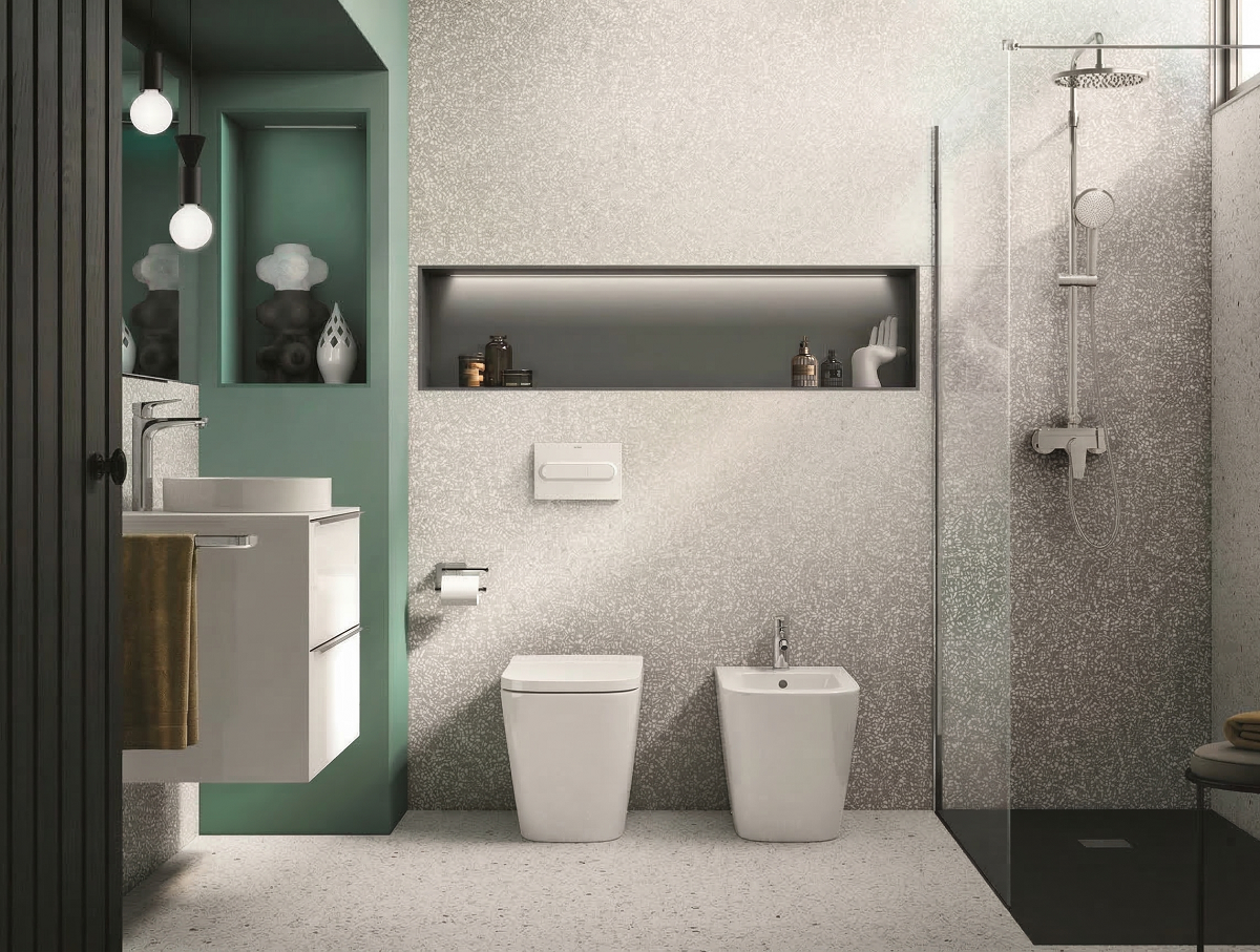 Vasul WC pe pardoseală din colecția Inspira Square se remarcă prin designul său geometric cu linii precise, fiind fabricat din materialul revoluționar FineCeramic. Această ceramică de ultimă generație permite obținerea unor pereți subțiri și a unor unghiuri bine definite, oferind o rezistență cu 30% mai mare decât porțelanul tradițional. Tehnologia Rimless asigură o curățare impecabilă a bolului, eliminând locurile unde se pot acumula impuritățile și optimizând fluxul de apă pentru o igienă maximă. Configurația Back-to-Wall (BTW) permite montarea lipită de perete, ceea ce facilitează întreținerea și oferă un aspect vizual modern și ordonat băii.