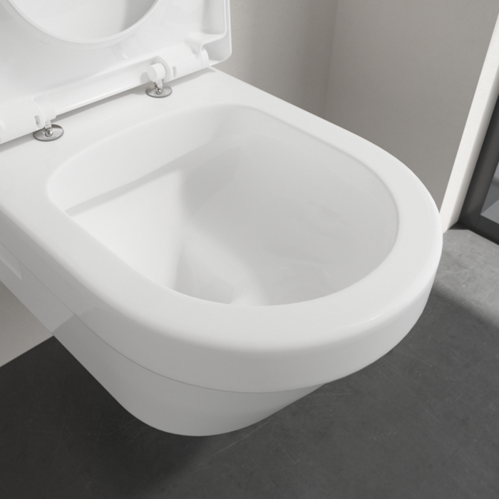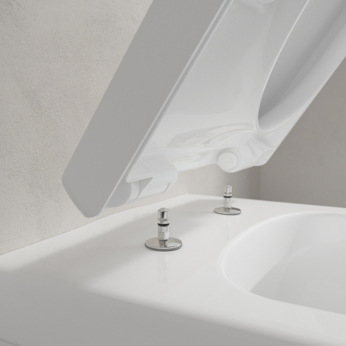Setul WC suspendat din colecția Architectura de la Villeroy&Boch reprezintă o soluție tehnică ideală pentru proiectele moderne, combinând designul atemporal cu inovațiile în materie de igienă. Tehnologia DirectFlush permite spălarea completă a interiorului vasului fără stropire, datorită designului fără margini care facilitează accesul în toate zonele pentru o curățare rapidă. Montajul suspendat și formele geometrice precise contribuie la un aspect vizual aerisit al băii. Capacul inclus este dotat cu tehnologiile SoftClosing și QuickRelease, asigurând o închidere lină și posibilitatea de a detașa rapid scaunul pentru o igienizare temeinică a ceramicii.