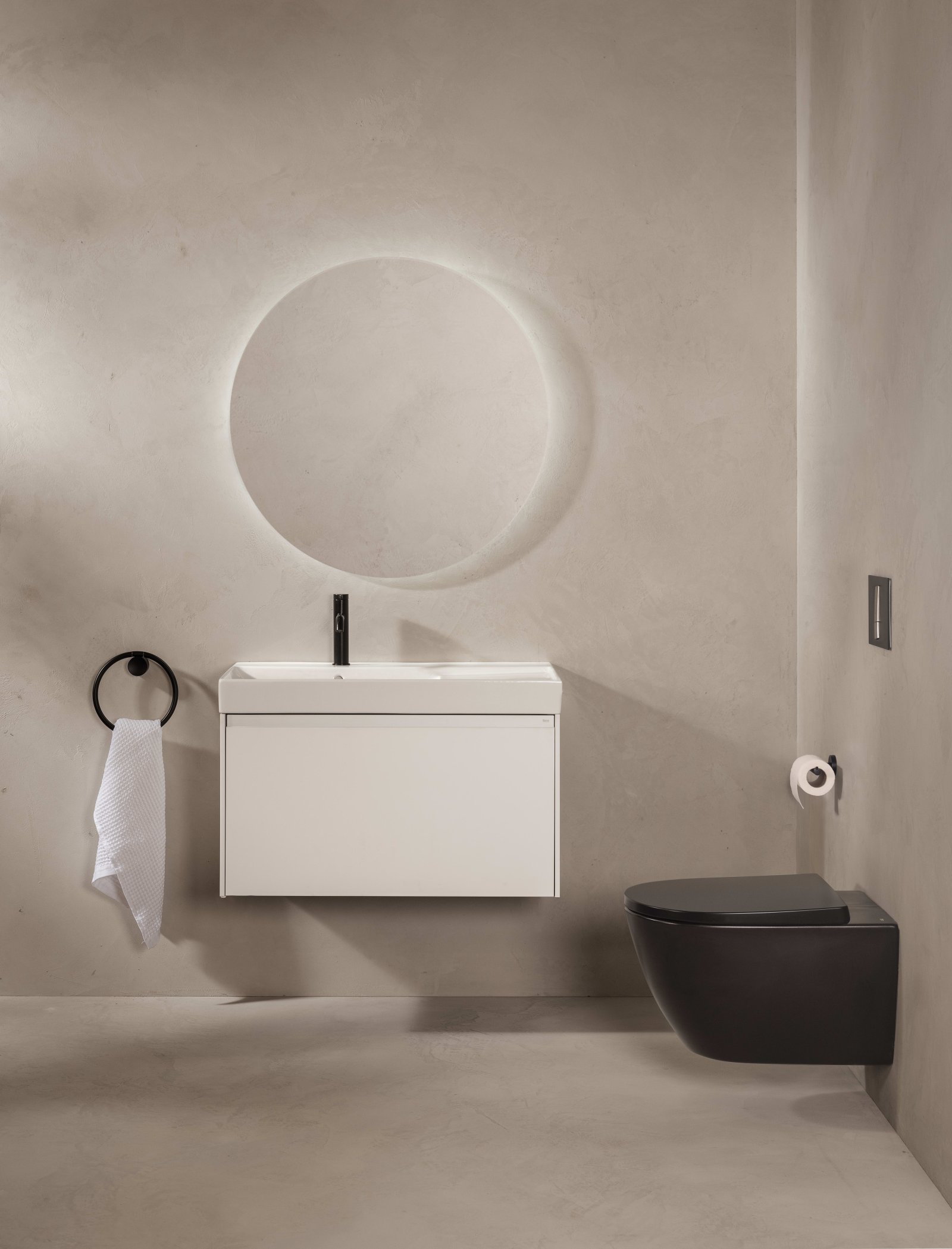Vasul WC suspendat din colecția Ona combină estetica organică inspirată de formele naturale ale Mediteranei cu tehnologia avansată de igienă. Finisajul negru mat oferă un aspect contemporan și sofisticat, transformând elementul funcțional într-un punct de accent în designul băii. Tehnologia Rimless asigură o spălare eficientă pe întreaga suprafață interioară, eliminând locurile unde se pot acumula bacteriile.