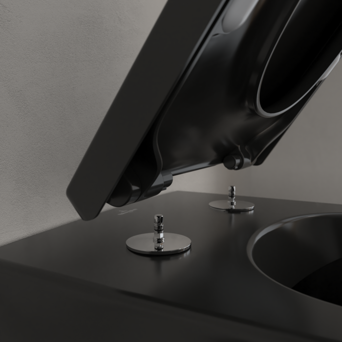 Vasul WC suspendat din colecția Subway 2.0 de la Villeroy&Boch reprezintă o piesă de design remarcabilă, ideală pentru proiectele de amenajare care caută un contrast vizual puternic. Tehnologia DirectFlush permite spălarea completă a interiorului vasului, designul fără margini eliminând zonele greu accesibile unde se pot acumula murdăria și bacteriile. Finisajul negru mat, tratat cu stratul special CeramicPlus, asigură o igienă superioară prin respingerea apei și a murdăriei, facilitând o curățare rapidă. Sistemul de fixare ascuns SupraFix 3,0 oferă o instalare precisă și o suprafață exterioară perfect netedă, accentuând estetica premium a produsului.