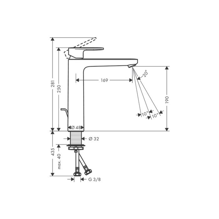 Baterie Hansgrohe VERNIS BLEND lavoar 190mm, negru mat