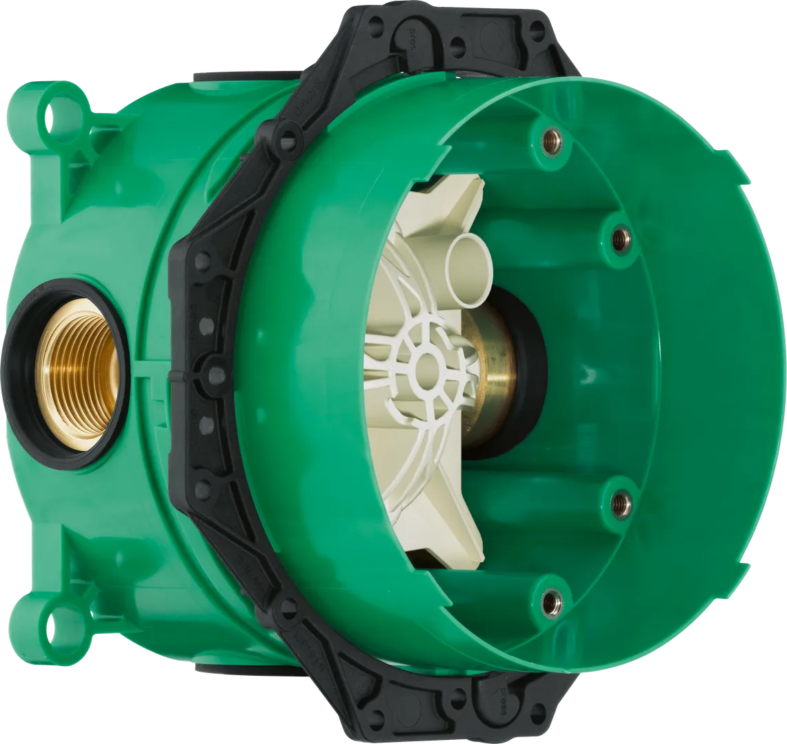 Corpul de încastrare Hansgrohe iBox universal este soluția ideală pentru montajul în perete al bateriilor de cadă, duș sau termostat de la producătorul Hansgrohe. Sistemul său simetric și adaptabil permite instalarea rapidă, inclusiv în perete din gips-carton, oferind o bază solidă pentru o gamă largă de baterii încastrate Hansgrohe.