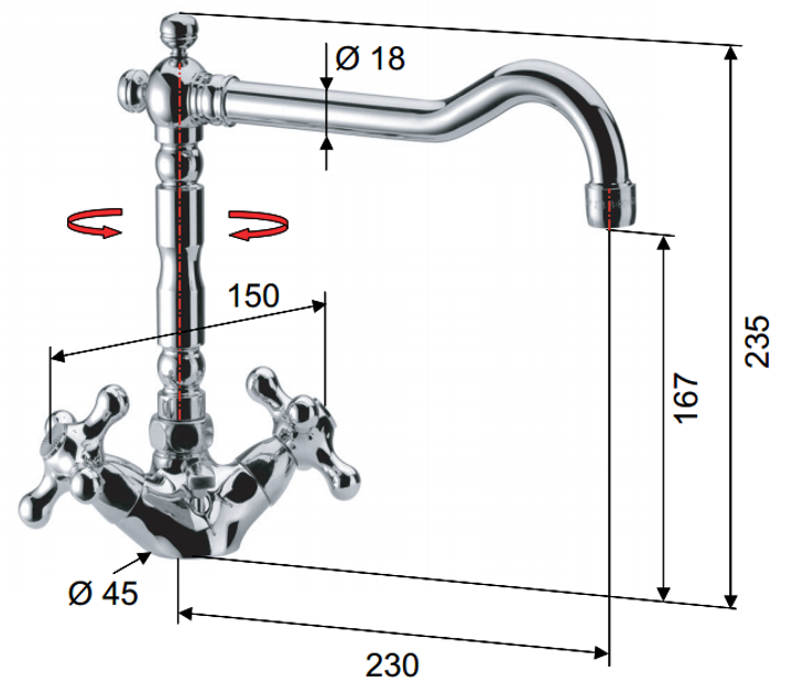 Bateria REVIVAL pentru lavoar cu montare pe perete combină estetica retro cu funcționalitatea modernă. Este realizată din alamă de calitate, cu finisaje cromate sau antichizate, oferind durabilitate și rezistență la coroziune. Montajul pe perete economisește spațiu și creează un aspect curat și elegant în baie. Manetele permit reglarea precisă a temperaturii și debitului apei, oferind confort și ușurință în utilizare.