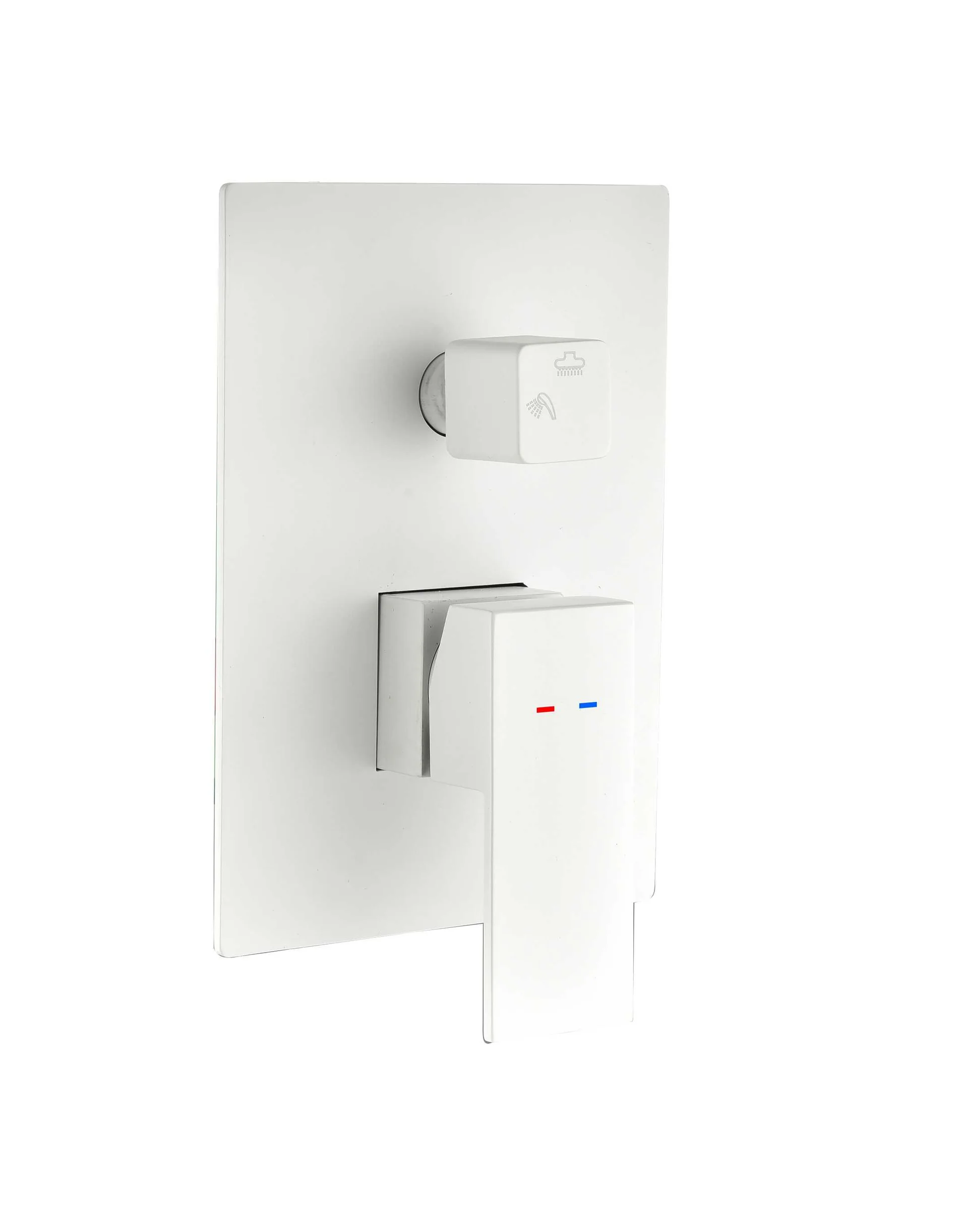 Bateria de duș încorporată TOKYO X cu trei ieșiri, concepută pentru sistemul DANBOX, cu finisaj alb mat, este o soluție avansată și minimalistă, perfectă pentru a controla mai multe funcții într-o singură zonă de duș.