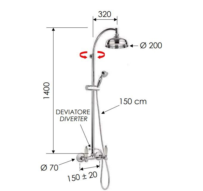 - Comutator pentru trecerea rapidă între robinet şi duş.