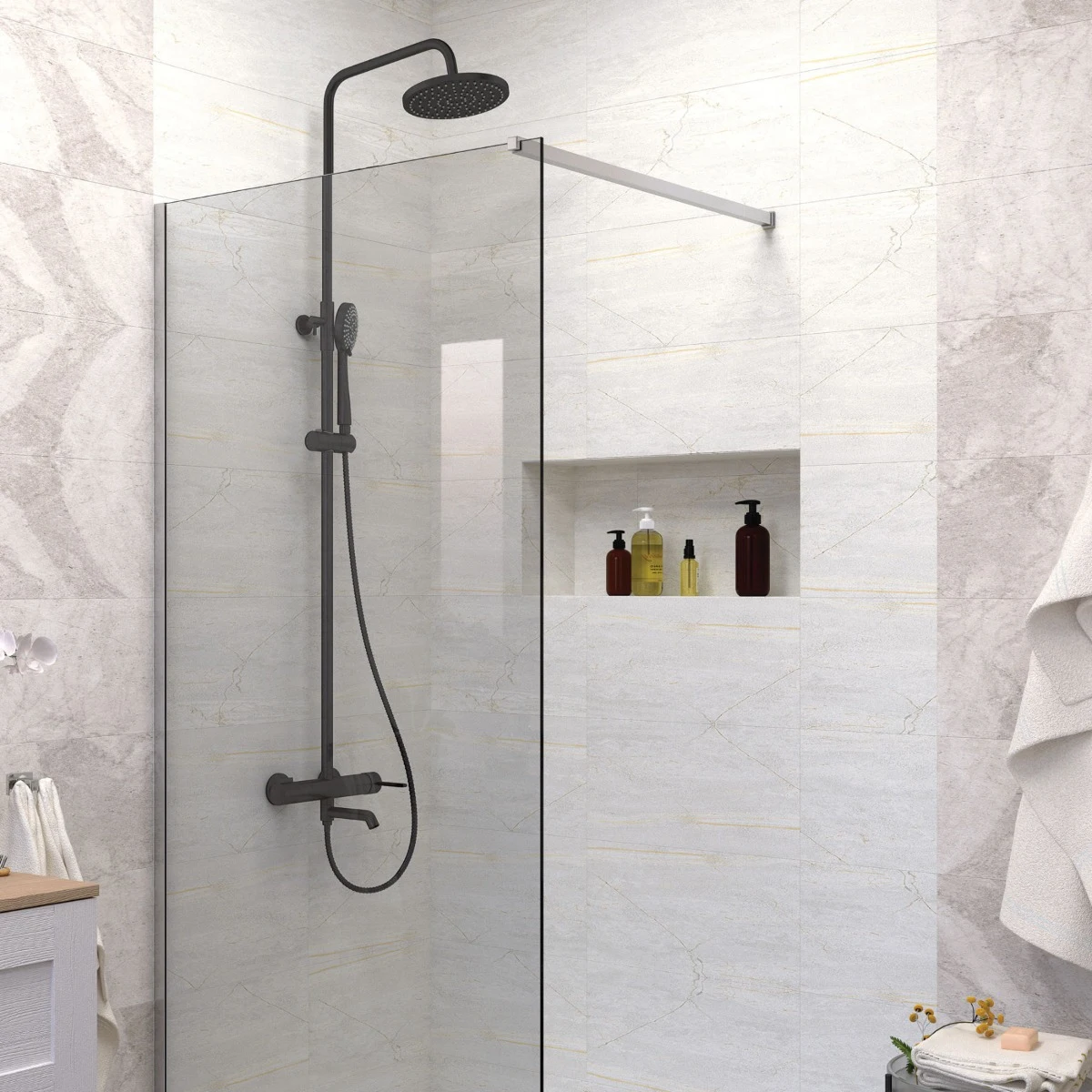 Coloana de duș PHOENIX-N reprezintă o soluție elegantă și funcțională pentru baie. Coloana combină designul modern cu elemente practice, oferind confort atât în cadă, cât și în cabină de duș.