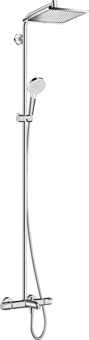 Sistemul de duș Crometta E 240 oferă utilizare confortabilă și sigură datorită combinației dintre dușul fix, dușul de mână și termostatul Ecostat Comfort. Modelul este compatibil cu încălzitoarele de apă instantanee și se montează prin instalare aparentă.