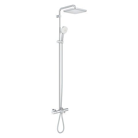 Transformați-vă baia într-un sanctuar de relaxare cu sistemul de duș GROHE Tempesta Cube 250. Conceput pentru a oferi o experiență de duș excepțională, acest sistem complet, cu design minimalist și linii precise, se integrează perfect în orice baie modernă.