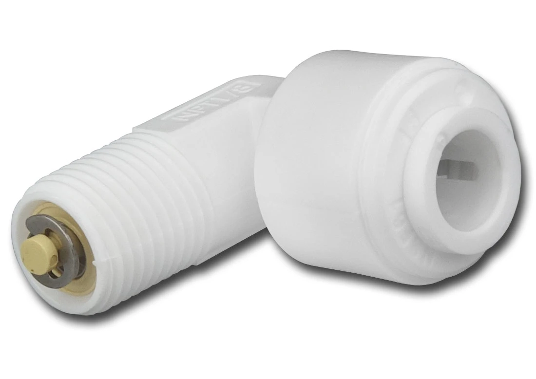 Acest conector are o dublă funcționalitate. El servește ca adaptor pentru a conecta un tub de 1/4" la un port cu filet exterior de 3/8", adesea întâlnit pe carcasa membranei de osmoză inversă.