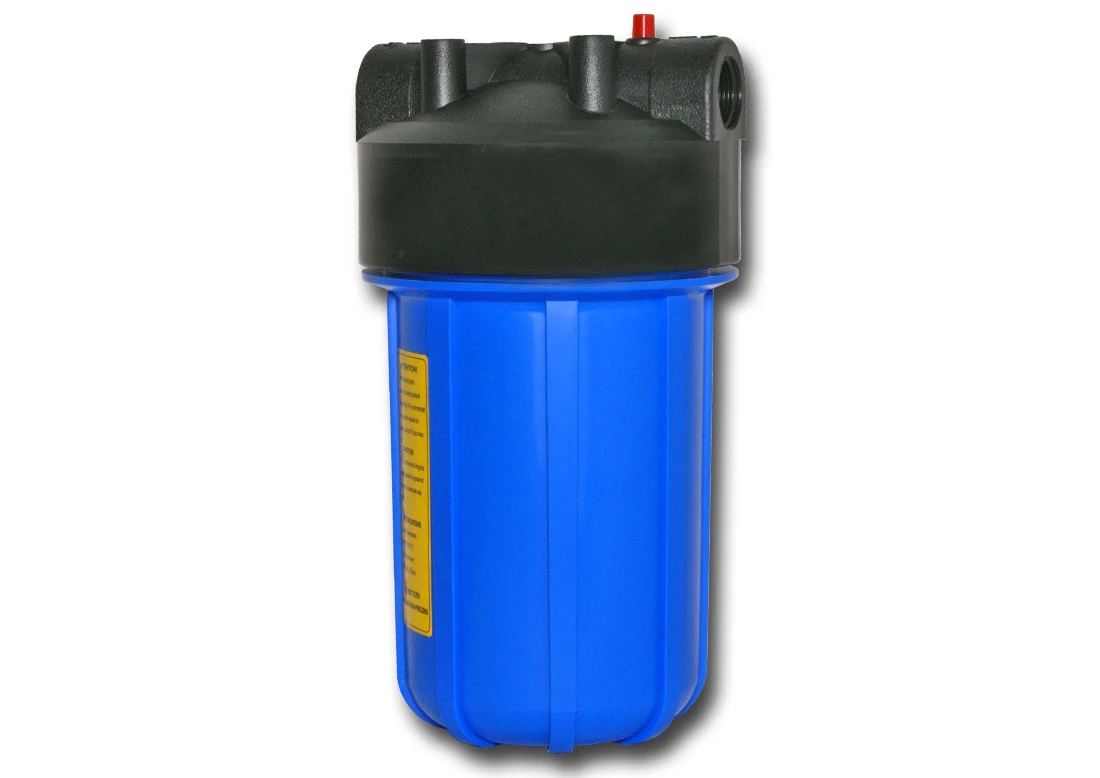 O carcasă standard de tip țeavă, concepută pentru utilizare cu cartușe BIG BLUE de 10 inch. Filetul de conectare a apei de 1 inch permite un debit ridicat de apă și o instalare ușoară a filtrului pe conexiunile principale de apă la intrarea unei case unifamiliale.
