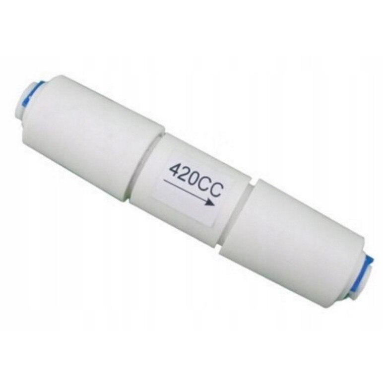 Numărul 420 din denumirea produsului se referă la debitul de apă reziduală, măsurat în mililitri pe minut (ml/min). Acest debit trebuie să fie selectat în funcție de capacitatea de producție a membranei de osmoză inversă. O membrană de 75 GPD (galoni pe zi), de exemplu, necesită, de obicei, un limitator de debit de 420 ml/min.