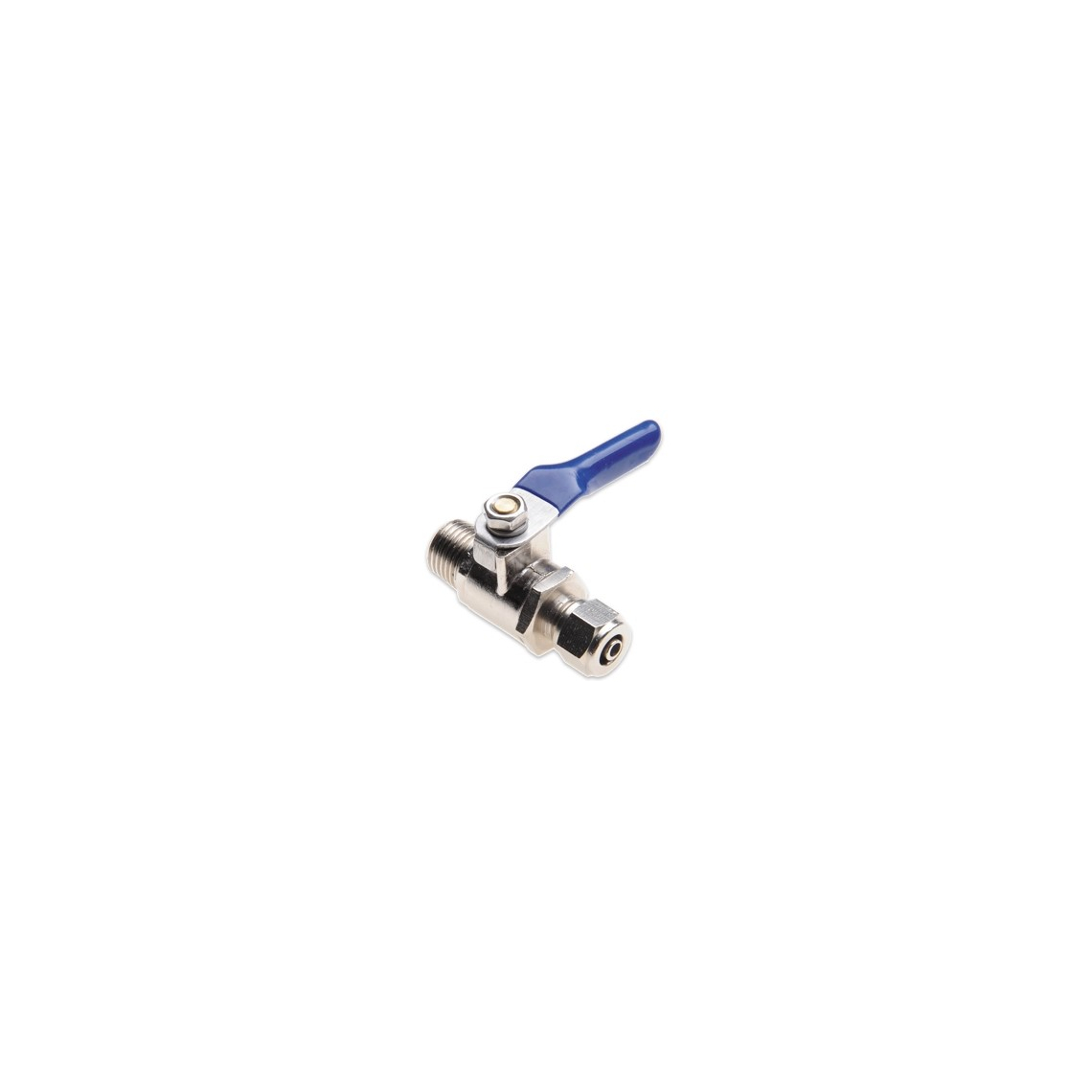 Acest robinet de conectare se instalează pe conducta de apă rece de sub chiuvetă. Designul său este simplu și eficient, având două ieșiri: una care continuă fluxul de apă către robinetul principal și o a doua ieșire, de dimensiune redusă, la care se conectează tubul de 1/4" al sistemului de osmoză inversă.