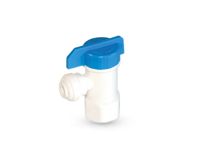 Acest robinet este un conector specializat, cu dublă funcționalitate. El se înșurubează pe portul cu filet al vasului de expansiune, asigurând o conexiune etanșă. Partea opusă a robinetului este un port cu îmbinare rapidă (Quick Connect)de 1/4", care face legătura cu tubul care duce la post-filtrul de cărbune.
